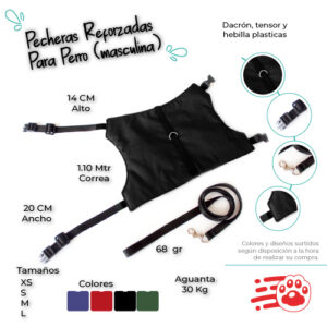 Pecheras reforzadas ideales para perros pequeños y medianos, se adaptan a su tamaño y son muy suaves y cómodas.